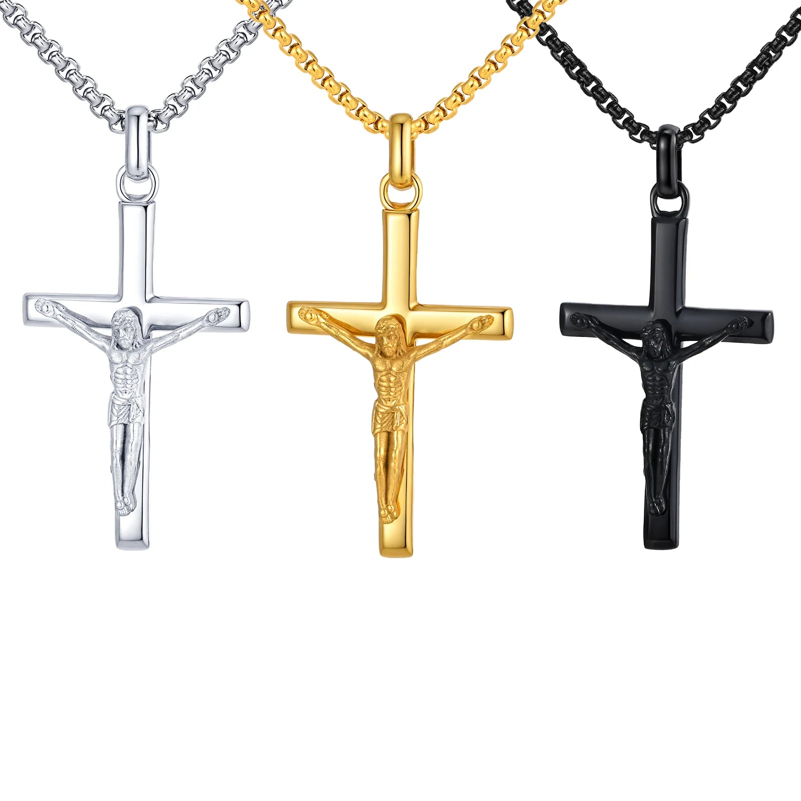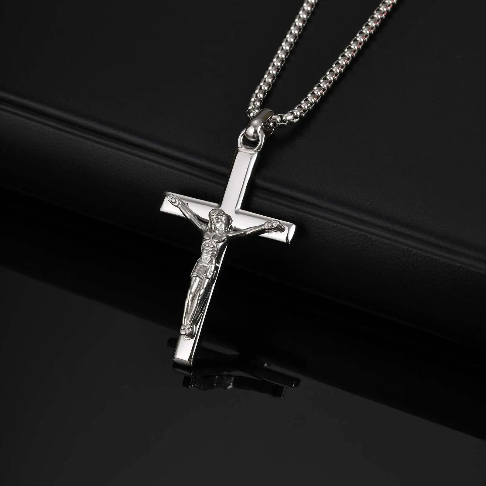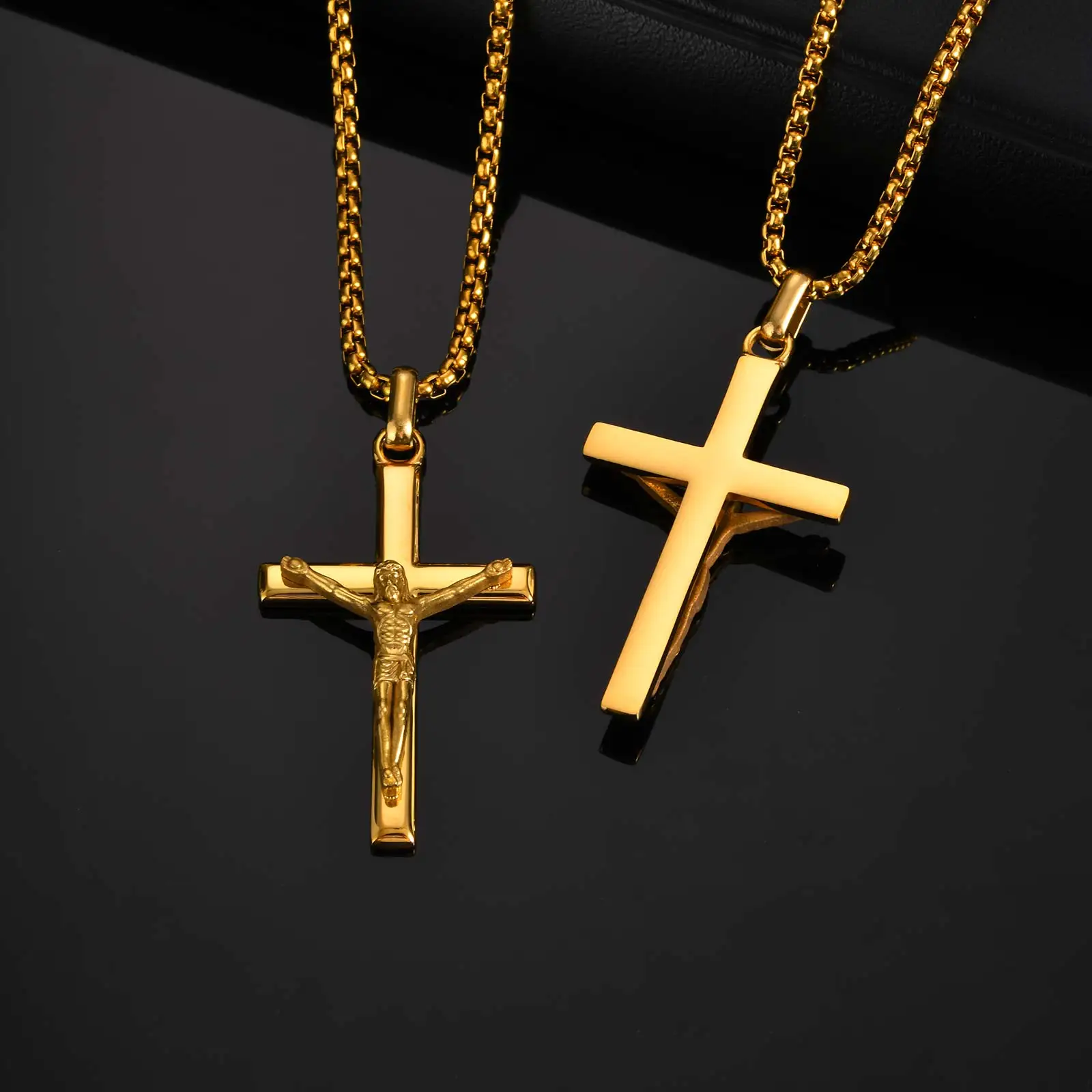 Stainless Steel Jesus Cross Pendant Necklace Fashion Gold Silver Color Christian Necklace Religion Prayer Faith Jewelry for Men