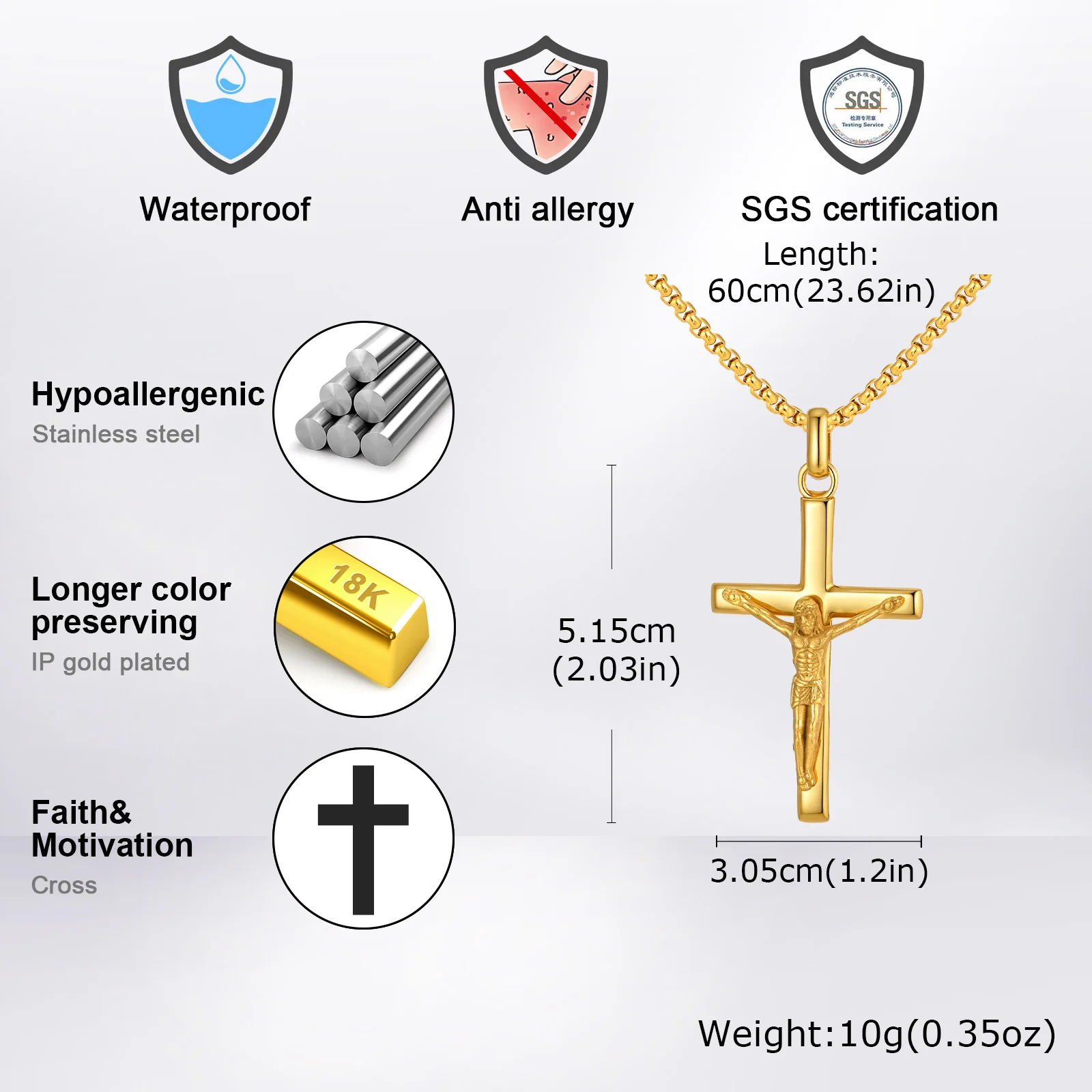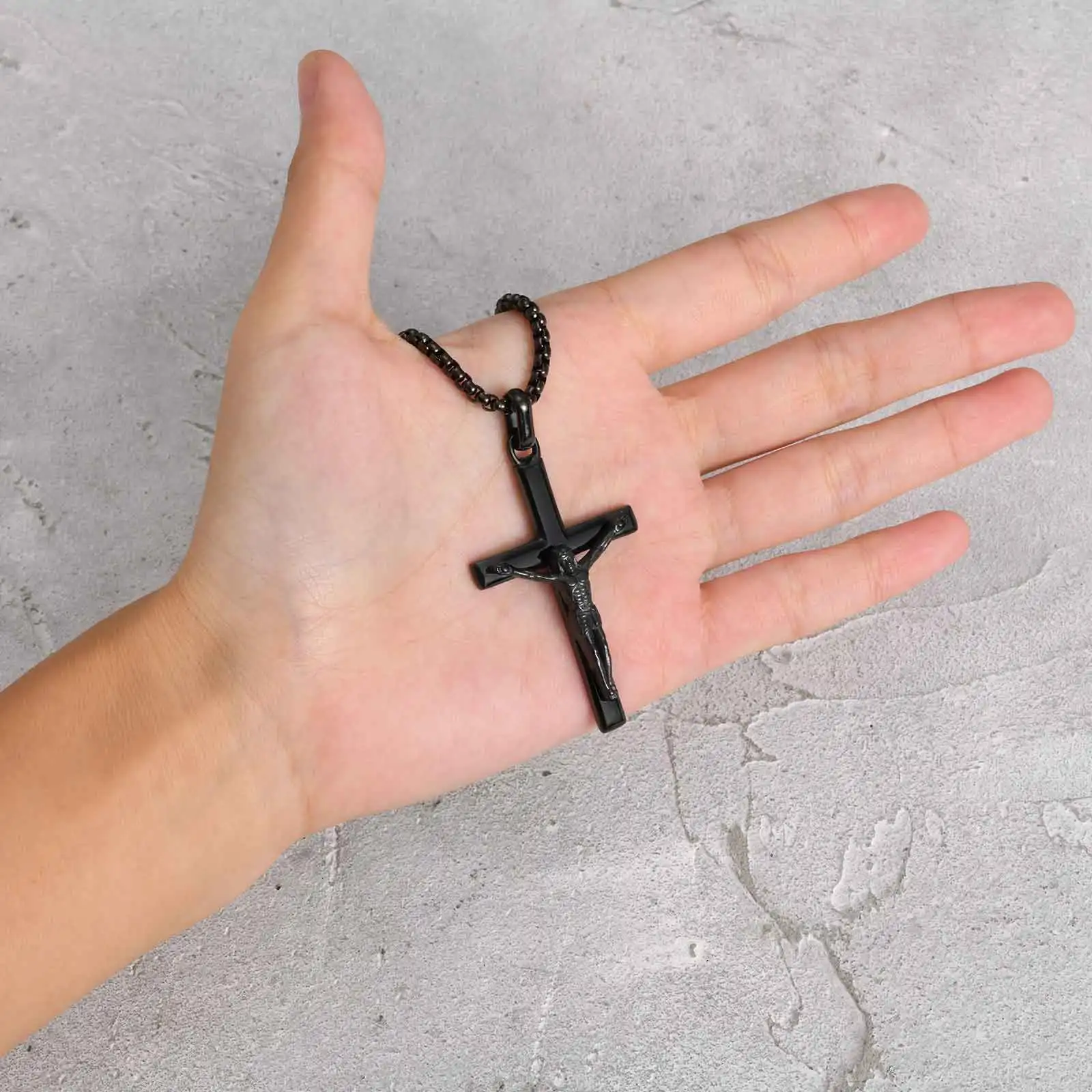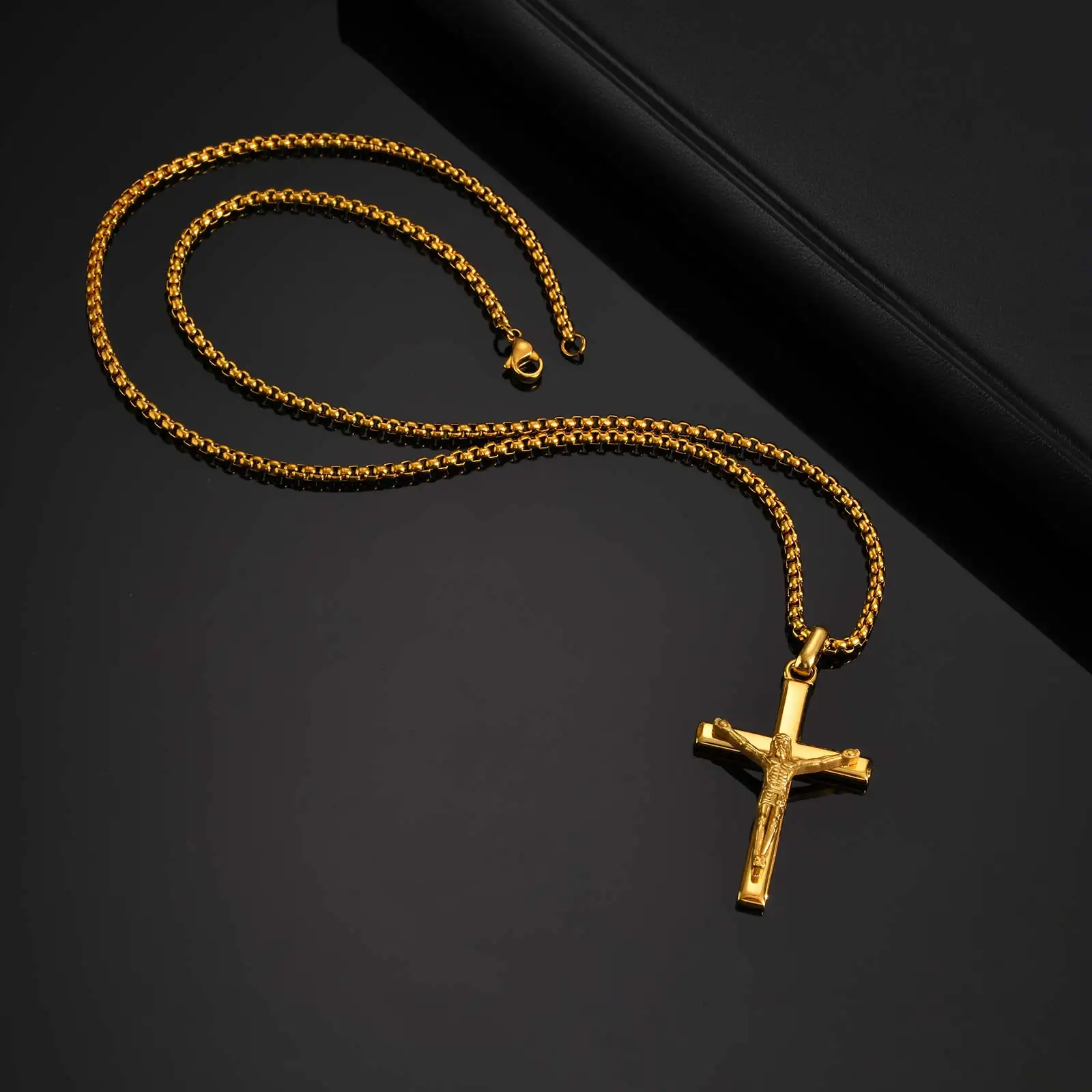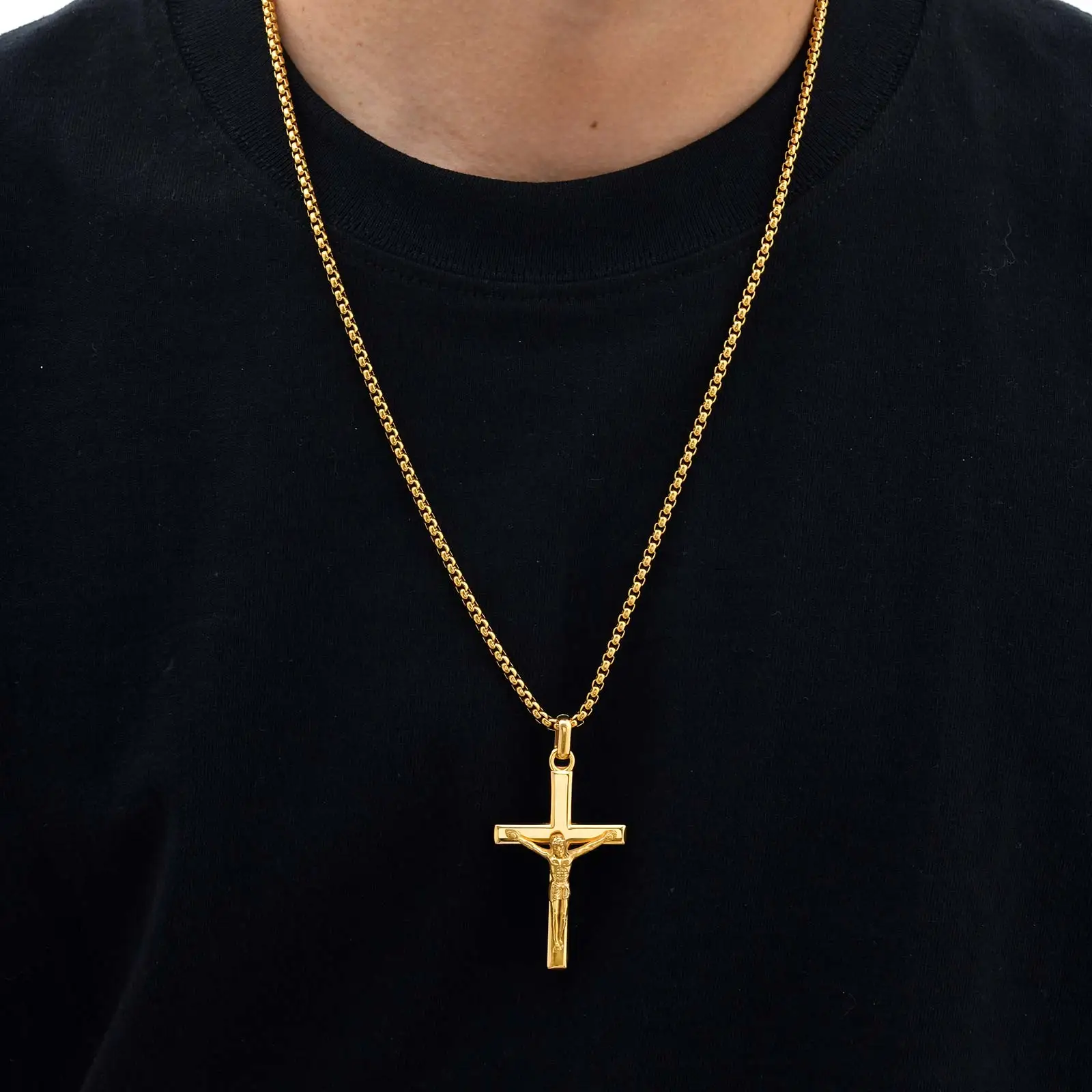 Stainless Steel Jesus Cross Pendant Necklace Fashion Gold Silver Color Christian Necklace Religion Prayer Faith Jewelry for Men